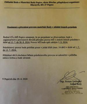 Základní škola a Mateřská škola Popice,