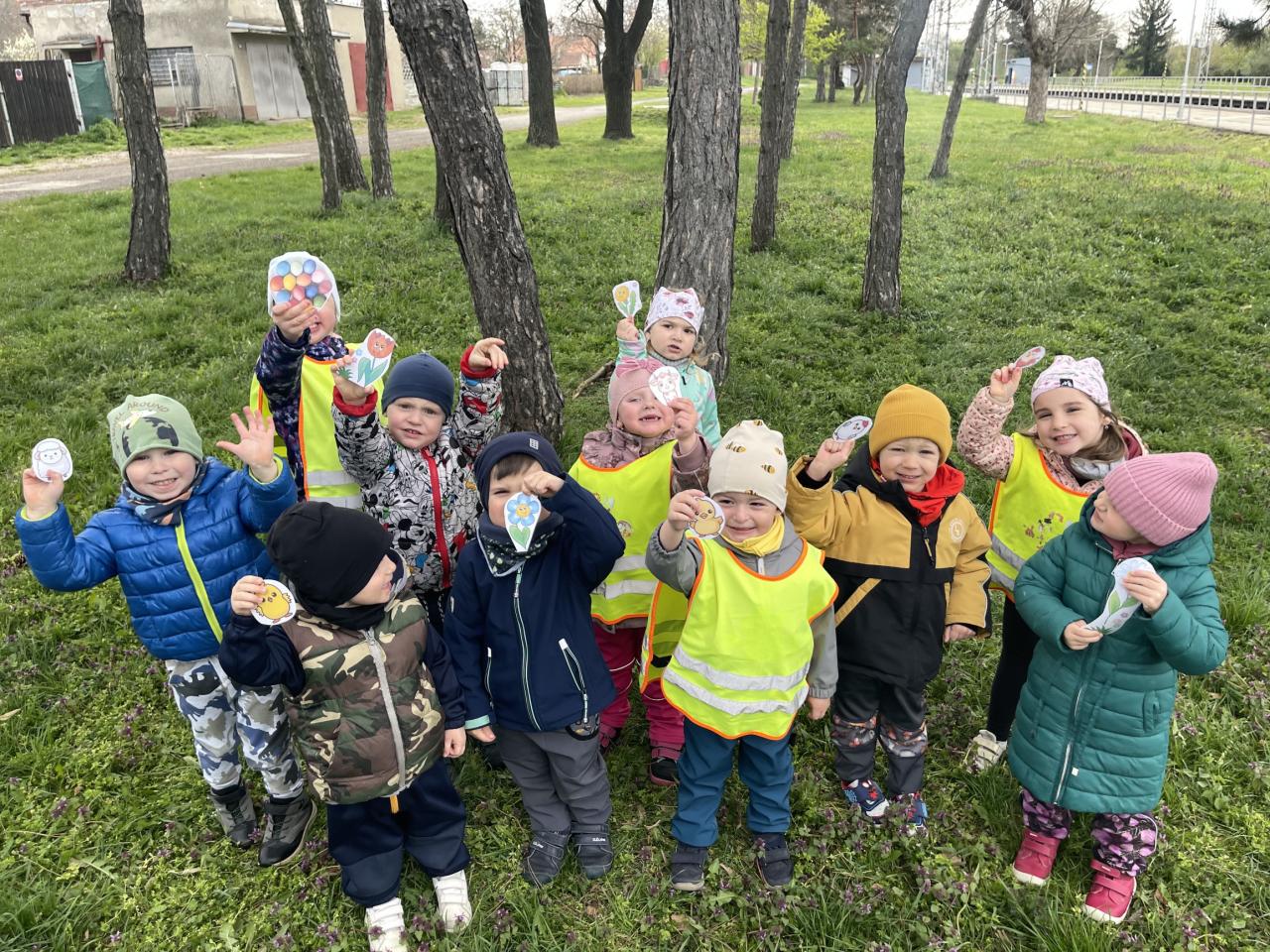 Na jednotlivých stanovištích, označených praporky, jsme plnily různé úkoly, jako hledání papírových kamarádů a zpívání písniček.