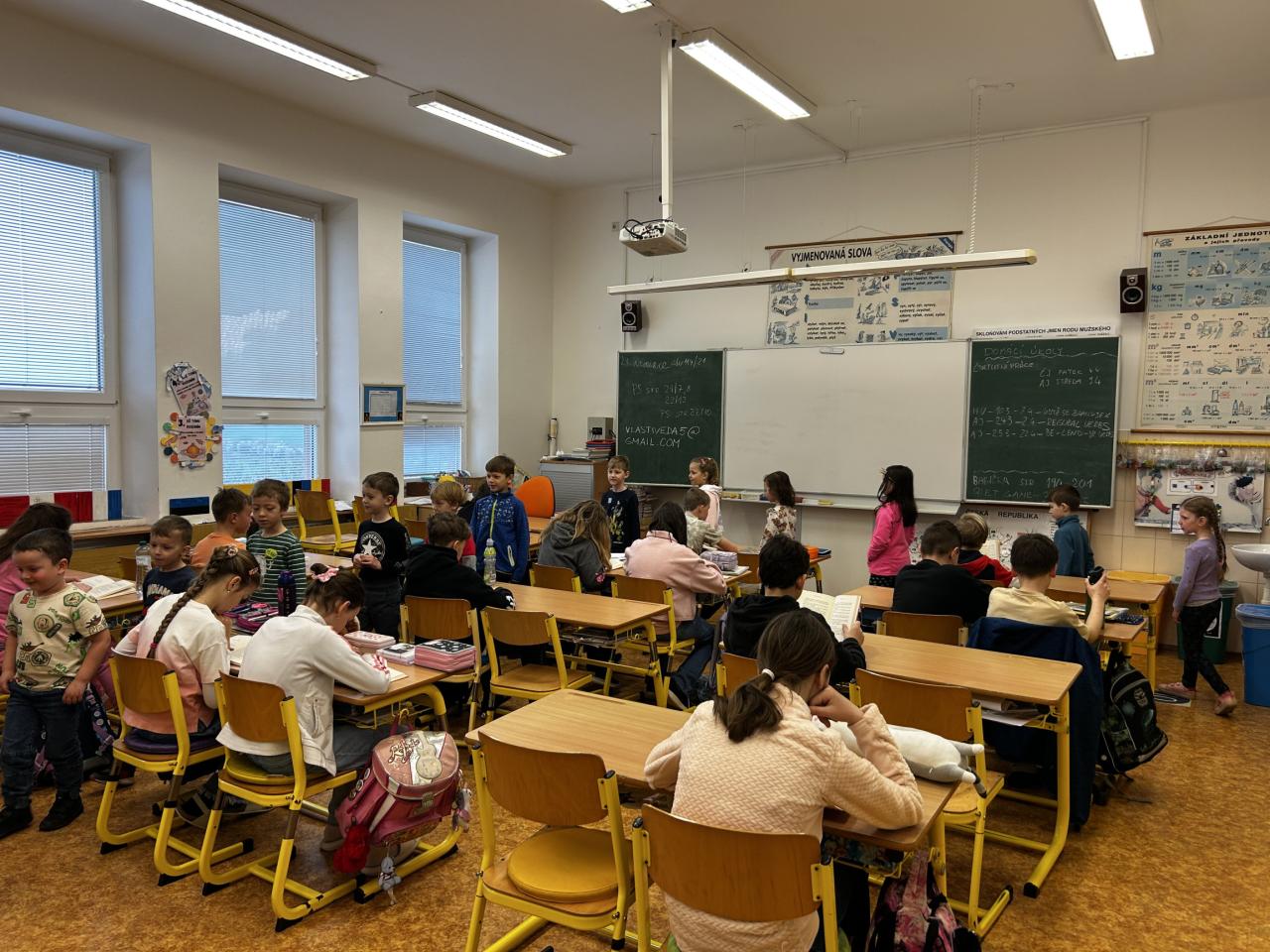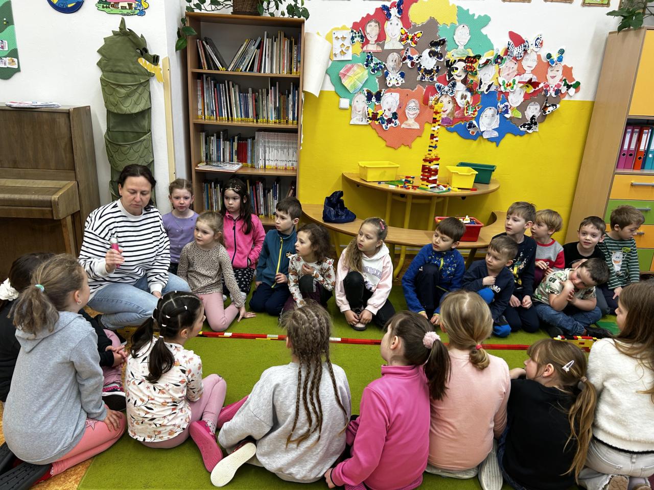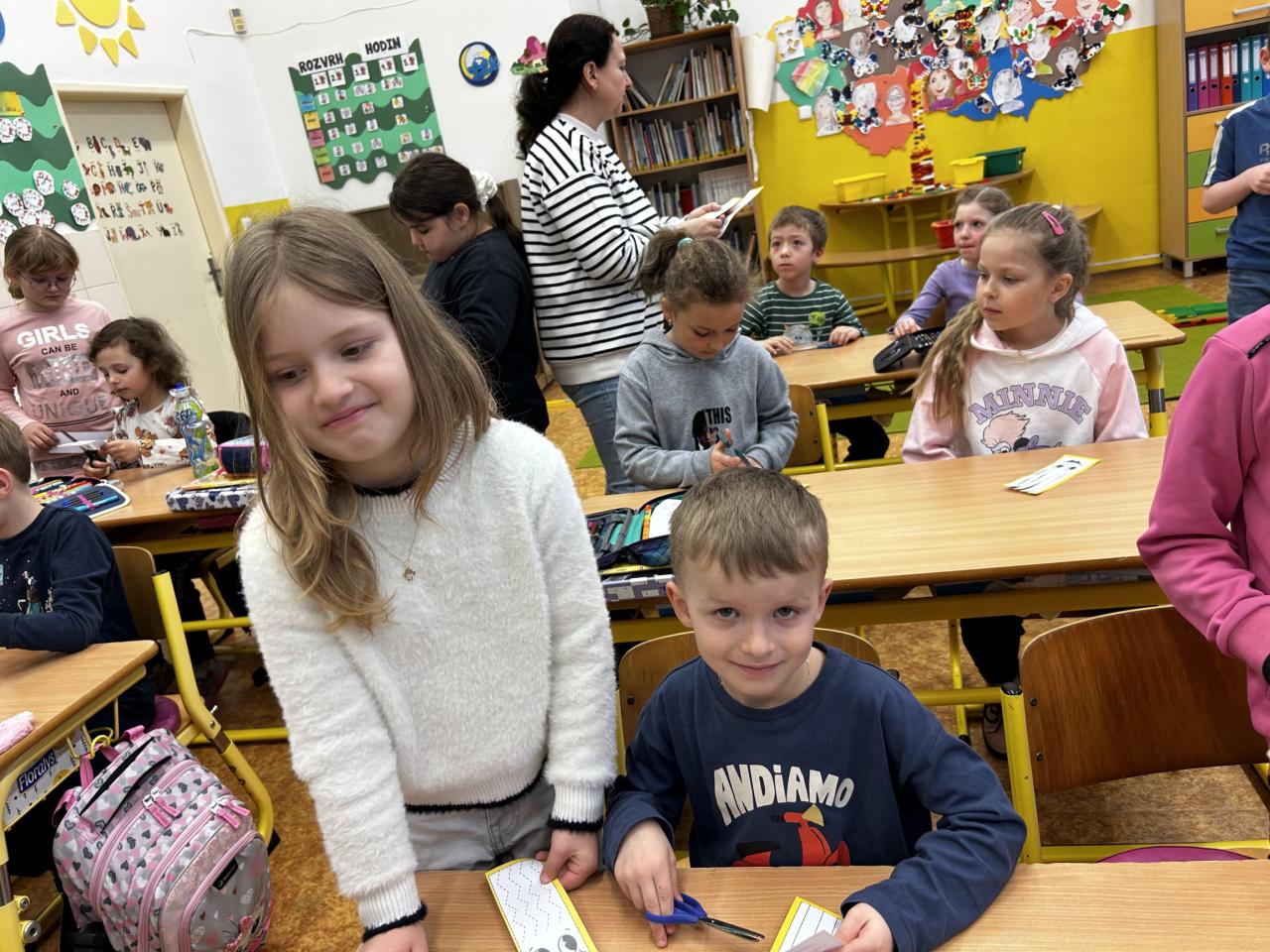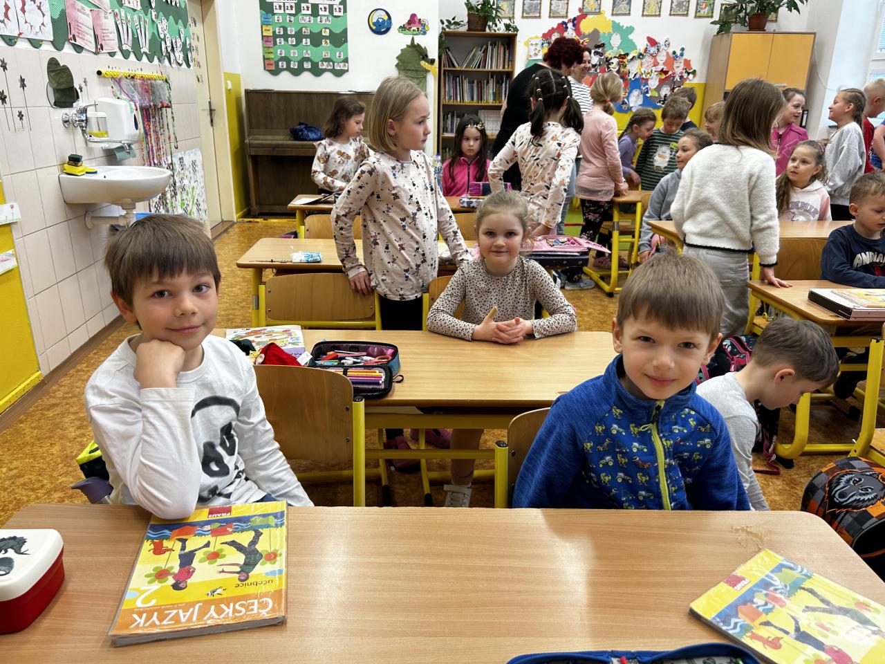 Ve středu 2. dubna 2025 jsme se s předškolními dětmi vydali na návštěvu základní školy v Pouzdřanech. Paní ředitelka nás srdečně přivítala a společně jsme si prohlédli všechny prostory školy. První vyučovací hodinu jsme nahlédli do výuky v 5.třídě a poté nás paní učitelka Jedličková se svými druháky zapojila do jejich vyučovacího procesu. Během přestávky jsme si užili zábavu se školními hrami a následně jsme se všichni vydali ven na školním hřiště a zahradu. S nadšením a radostí jsme se vrátili do školky, plní zážitků. Děti už se moc těší, až z nich budou školáci a někteří z nich budou moci tuto školu navštěvovat.