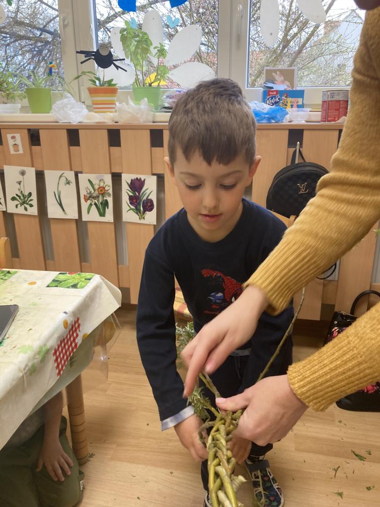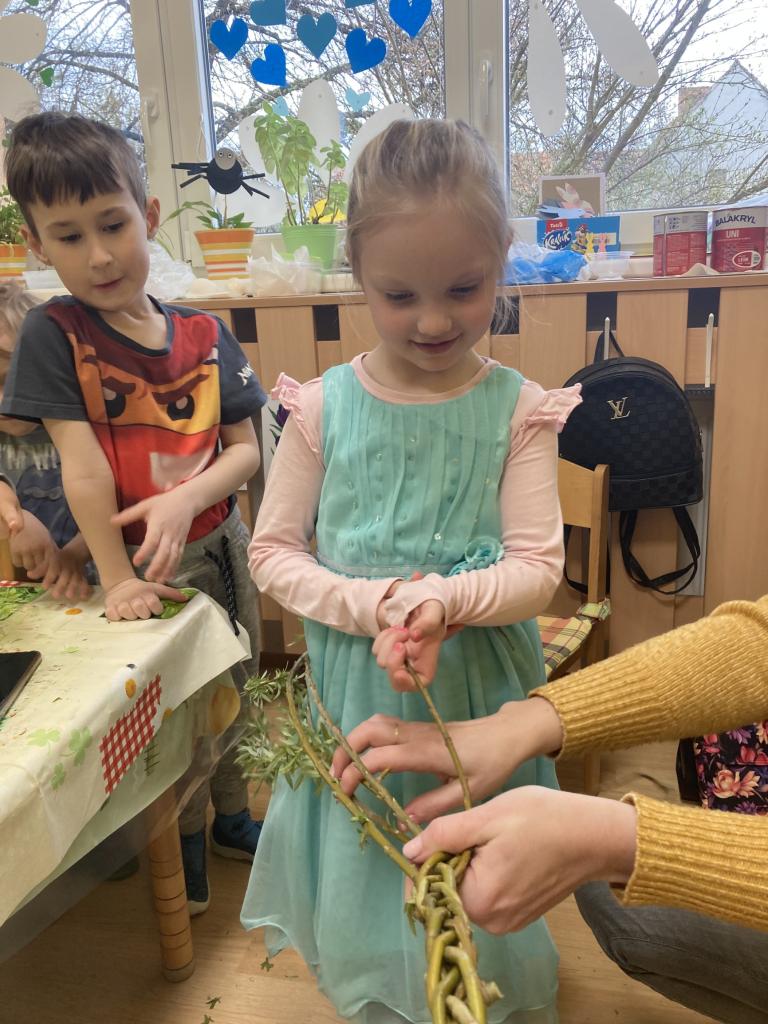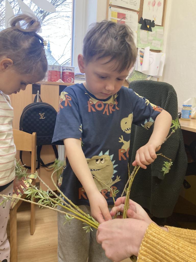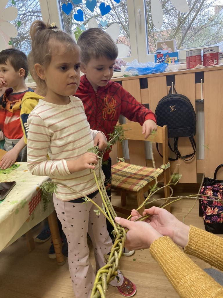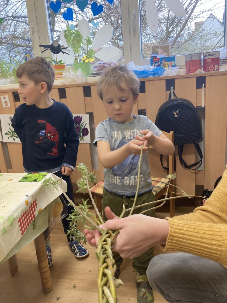 Pak si zkusili uplést pomlázku z vrbového proutí. A posuďte sami jak se jim krásně povedla :-)