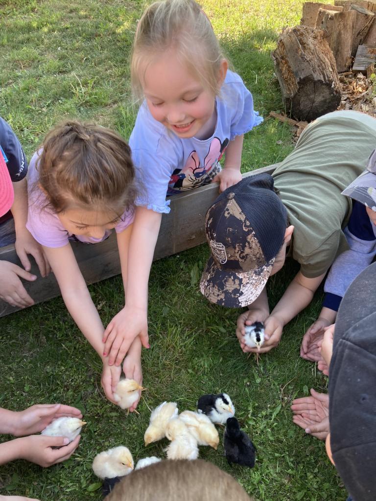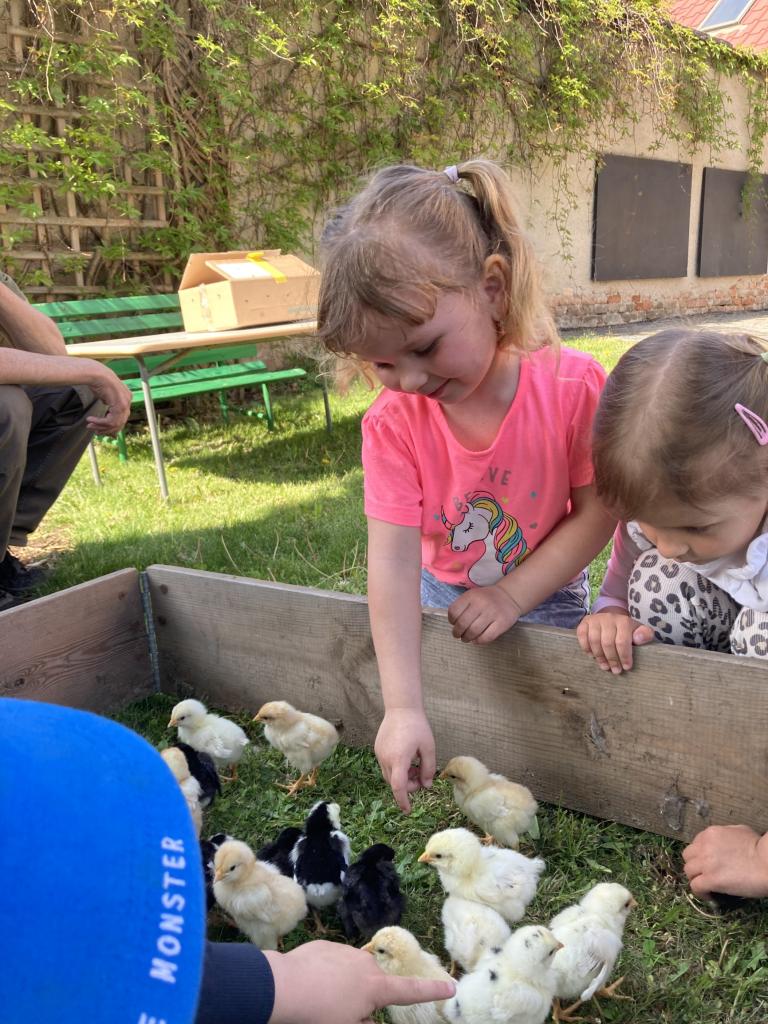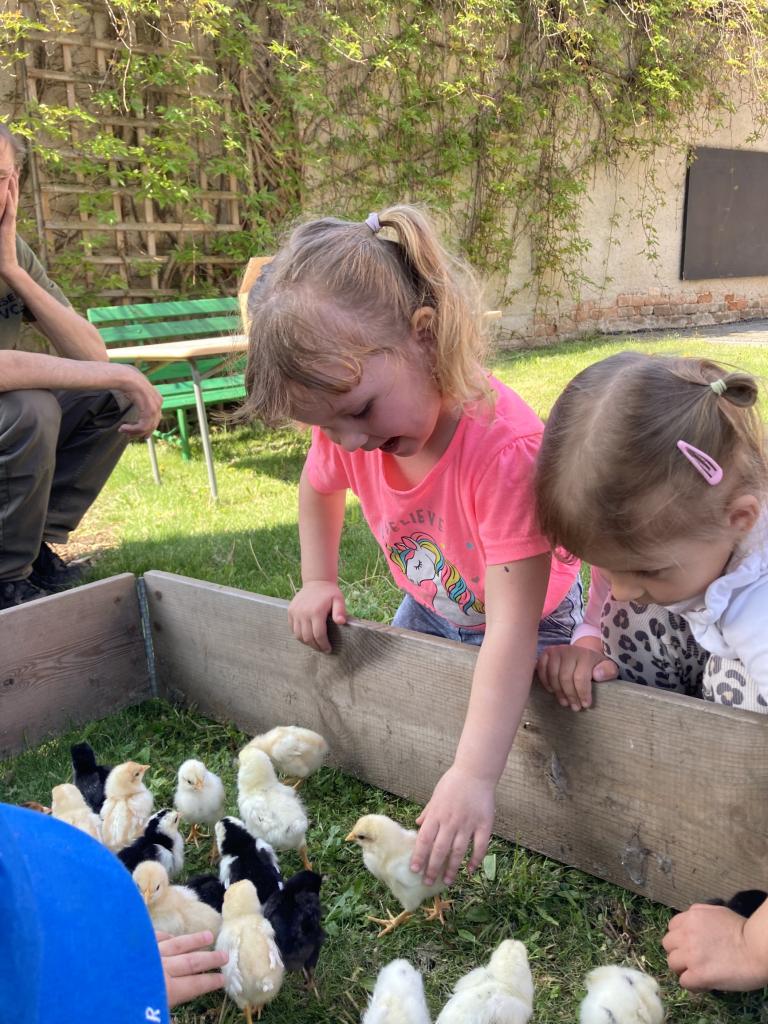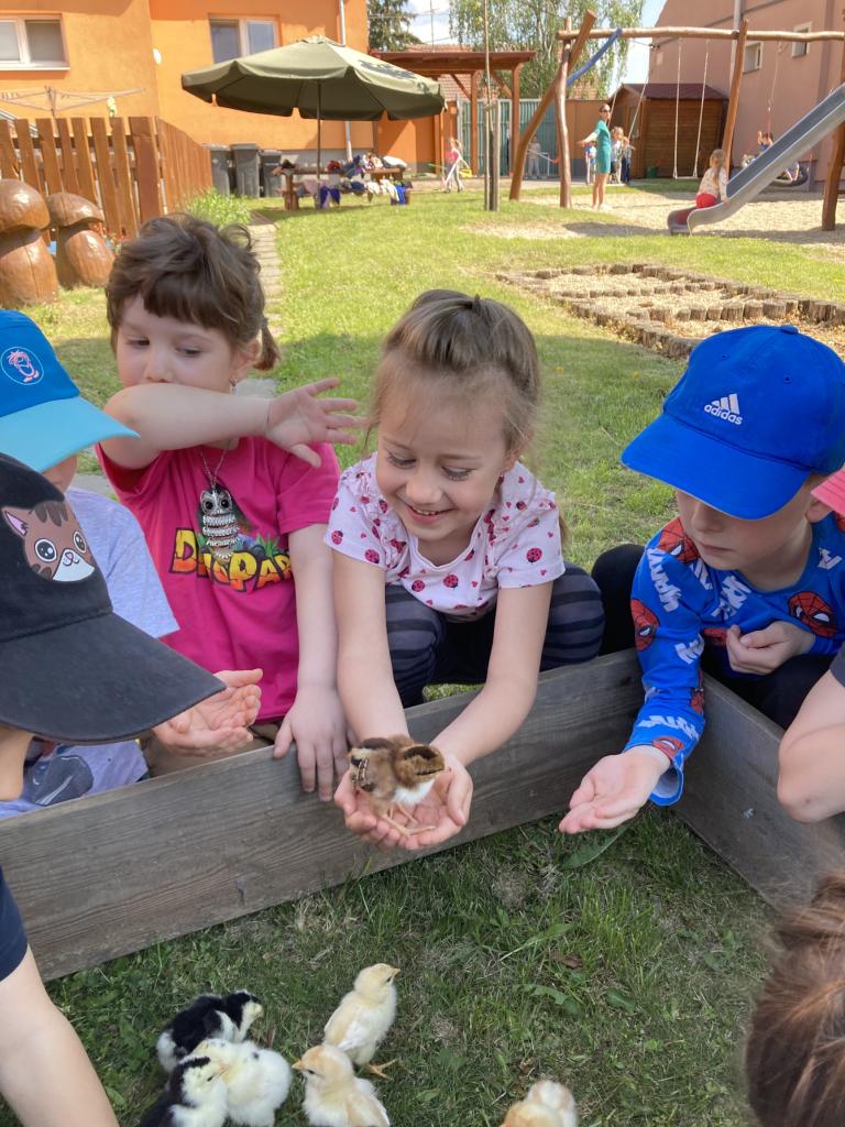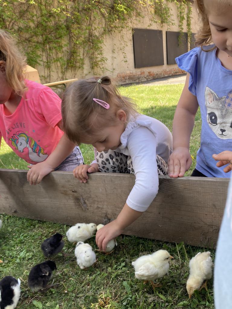 Děti si je mohly pohladit a ti odvážnější i pochovat. Kuřátka měla takový úspěch, že některé děti si je chtěly rovnou odnést domů.