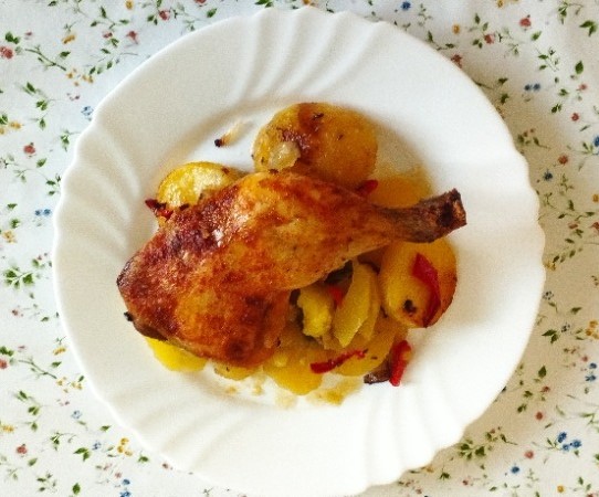 Pečené stehno s pečenými brambory se zeleninou