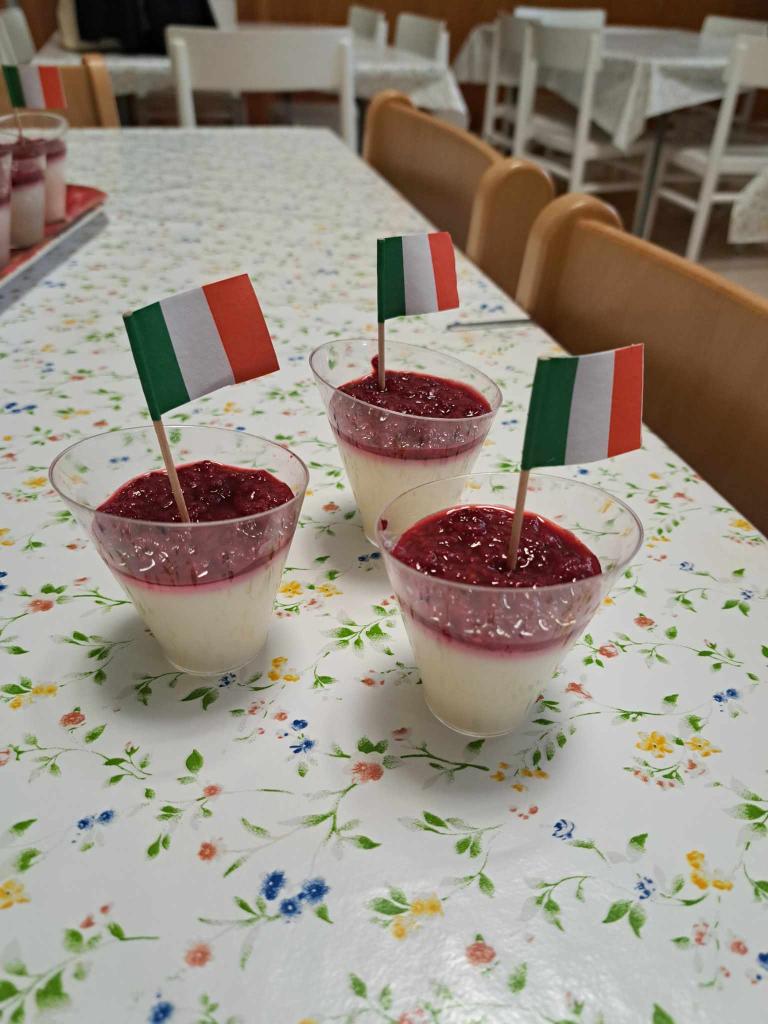 V úterý 17.9. se děti seznámily s italskou kuchyní. K přesnídávce jsme připravili bagetku s cuketovou pomazánkou, na oběd polévku minestrone a špagety, jako dezert panna cotta a na svačinku si děti pochutnaly na minipizze.