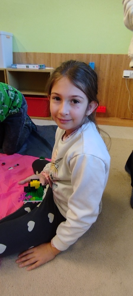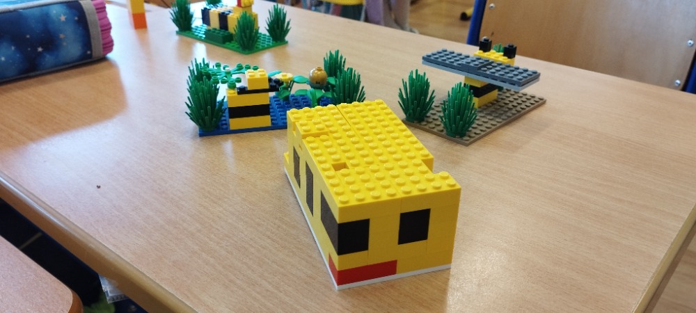 V druhé části se pustily do stavění z LEGO® kostek – každá skupinka nejprve postavila vlastního opylovače a pak navrhla vlastní model řešení pro jejich lepší život: barevné louky, úkryty pro včelky nebo města přátelská přírodě.